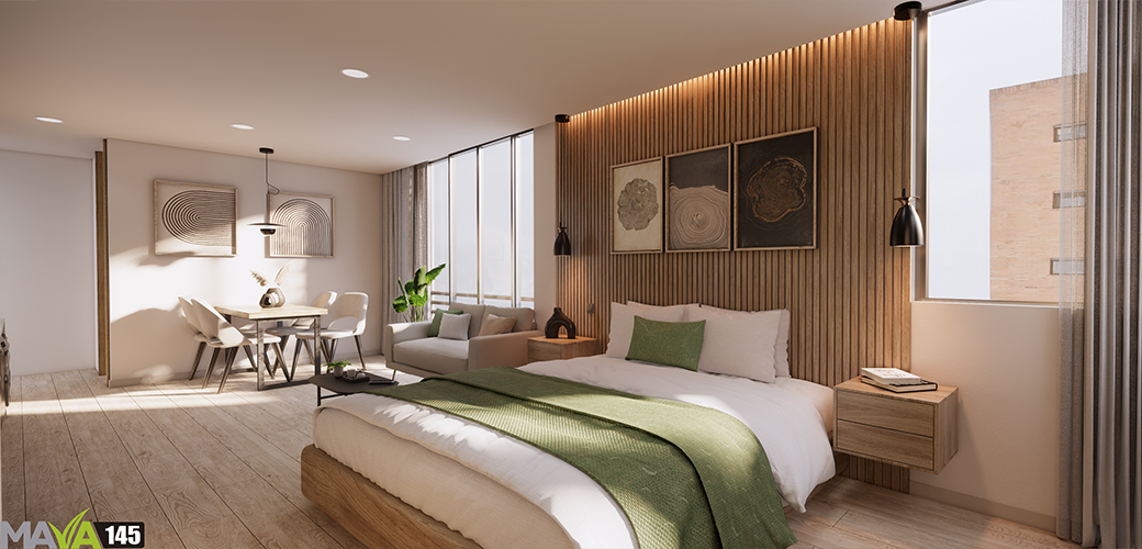MAVA 145 es un Proyecto de Vivienda propiedad horizontal, estrato 4, ubicado en BOGOTA, en la Calle 145a # 21-19, Sector las Margaritas Cedritos, el cual contiene 41 apartaestudios y apartamentos, con áreas entre los 24,10mt2 y los 59,06mt2 en construcción tradicional. Estas unidades de vivienda contaran en su área social con un Lobby Tipo Hotel, Ascensor, cuarto de basuras, Salón Social, Gimnasio.